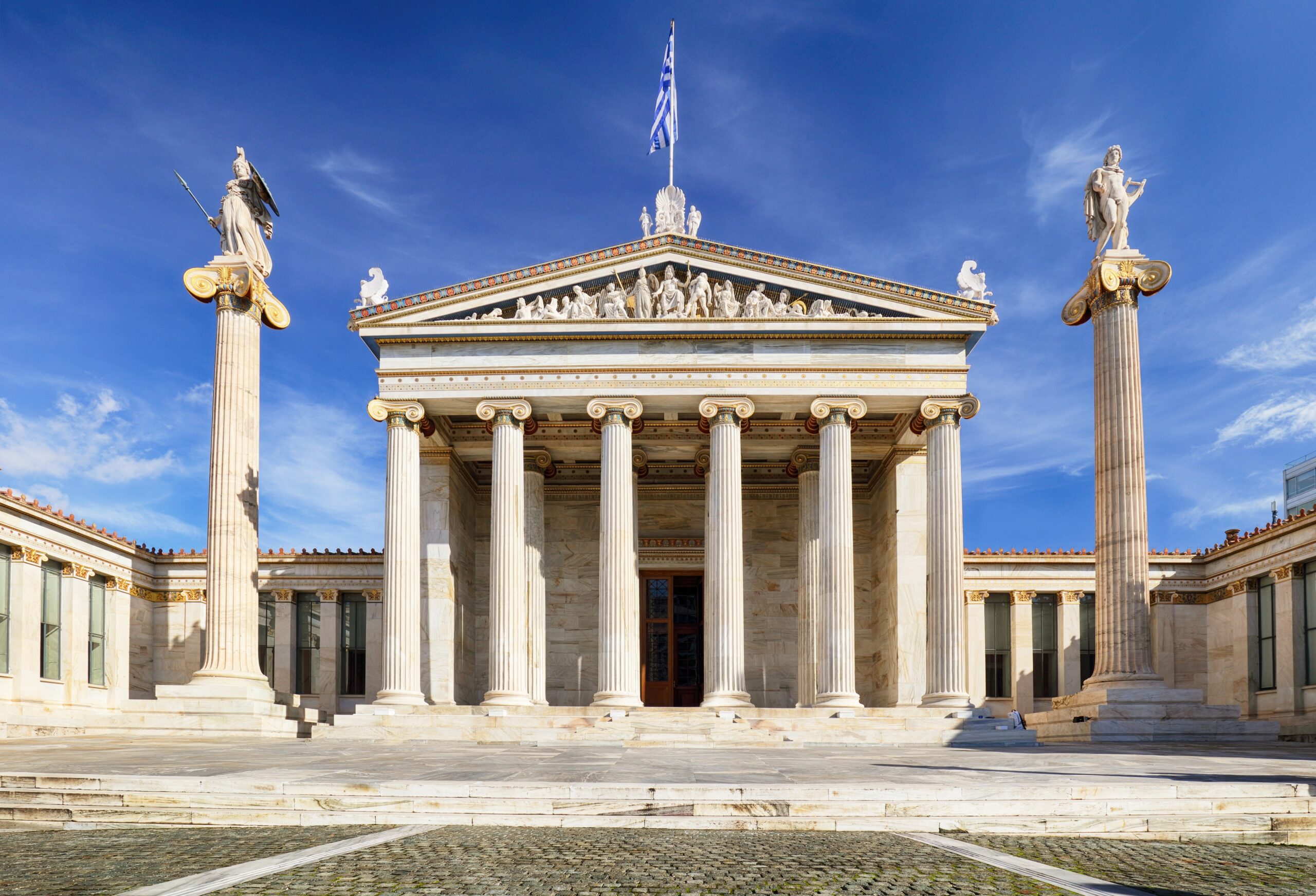 The Academy of Athens is part of an impressive neoclassical trio, alongside the National Library and the University of Athens. The building, completed in the 19th century, features stunning sculptures and is an architectural gem of the city.